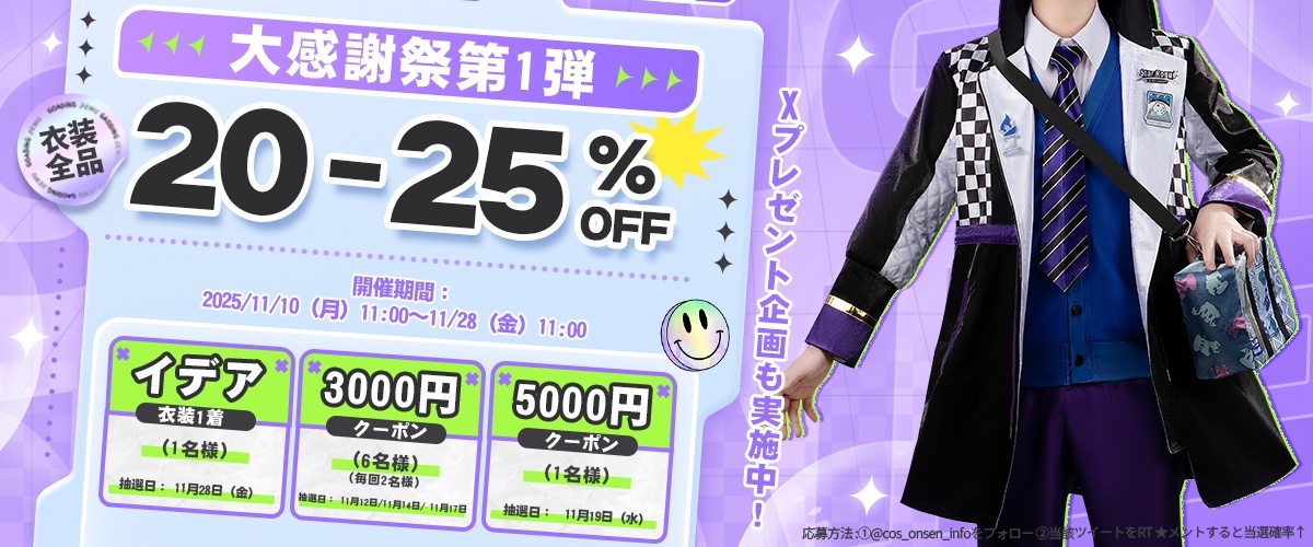 新着商品 【25%OFF】バーチャルYouTuber Vtuber 3rd Anniversary 渡会雲雀 コスプレ衣装 [7635] 15,825円(税込) 希望小売価格: 21,100円 【25%OFF】バーチャルYouTuber Vtuber 渡会ひばり 悪魔退治風 新衣装 コスプレ衣装 [7632] 15,915円(税込) 希望小売価格: 21,220円 【25%OFF】バーチャルYouTuber Vtuber Buddy Mode Type 叢雲 コスプレ衣装 [7633] 18,615円(税込) 希望小売価格: 24,820円 【25%OFF】ポケモン ポケモンZA カナリィ コスプレ衣装 [7716] 13,965円(税込) 希望小売価格: 18,620円 【25%OFF】バーチャルYouTuber Vtuber シェリン 探偵衣装 コスプレ衣装 [7824] 16,545円(税込) 希望小売価格: 22,060円 【25%OFF】バーチャルYouTuber Vtuber 三枝明那 助手衣装 コスプレ衣装 [7825] 15,525円(税込) 希望小売価格: 20,700円 【25%OFF】ツイステ風 珊瑚の海 渚のセレブレイト ジェイド コスプレ衣装 [7821] 14,040円(税込) 希望小売価格: 18,720円 【25%OFF】バーチャルYouTuber Vtuber 早乙女ベリー 「White Bright Live!」 ホワイトデー衣装 コスプレ衣装 [7630] 16,260円(税込) 希望小売価格: 21,680円 【25%OFF】バーチャルYouTuber Vtuber ローレン 4周年新衣装 コスプレ衣装 黒バージョン [y7714-1] 15,825円(税込) 希望小売価格: 21,100円 【25%OFF】バーチャルYouTuber Vtuber 3rd Anniversary 風楽奏斗 コスプレ衣装 [7634] 14,985円(税込) 希望小売価格: 19,980円 もっと見る