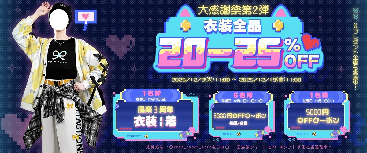 新着商品 【25%OFF】バーチャルYouTuber Vtuber 佐伯イッテツ 新衣装 コスプレ衣装 [7636] 14,895円(税込) 希望小売価格: 19,860円 【25%OFF】バーチャルYouTuber Vtuber 魔界ノりりむ 宇宙コンセプト新衣装 コスプレ衣装 [7829] 18,420円(税込) 希望小売価格: 24,560円 【25%OFF】ウマ娘プリティーダービー 夏凪ネイビードロップ シュヴァルグラン 水着 コスプレ衣装 [7637] 13,020円(税込) 希望小売価格: 17,360円 【25%OFF】ウマ娘プリティーダービー 「めにしゅき?ラッシュっしゅ!」 4周年ライブ衣装 コスプレ衣装 [7828] 11,865円(税込) 希望小売価格: 15,820円 【25%OFF】バーチャルYouTuber Vtuber 加賀美ハヤト 新3D衣装 コスプレ衣装 [7827] 14,745円(税込) 希望小売価格: 19,660円 【25%OFF】バーチャルYouTuber vtuber ましろ爻 SYMPHONIA 5周年ライブ衣装 コスプレ衣装 [7820] 17,880円(税込) 希望小売価格: 23,840円 【25%OFF】バーチャルYouTuber Vtuber 3rd Anniversary 渡会雲雀 コスプレ衣装 [7635] 15,825円(税込) 希望小売価格: 21,100円 【25%OFF】バーチャルYouTuber Vtuber 渡会ひばり 悪魔退治風 新衣装 コスプレ衣装 [7632] 15,915円(税込) 希望小売価格: 21,220円 【25%OFF】バーチャルYouTuber Vtuber Buddy Mode Type 叢雲 コスプレ衣装 [7633] 18,615円(税込) 希望小売価格: 24,820円 【25%OFF】ポケモン ポケモンZA カナリィ コスプレ衣装 [7716] 13,965円(税込) 希望小売価格: 18,620円 もっと見る