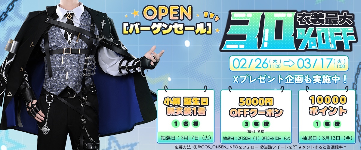 おすすめ商品 【30%OFF&女性Mサイズ在庫あり・一週間発送】ポケモン ポケモンZA カラスバ コスプレ衣装 [7643] 13,902円(税込) 希望小売価格: 19,860円 【30%OFF&S/Mサイズ在庫あり】バーチャルYouTuber Vtuber 中華絵巻 セラフ 中華風衣装 コスプレ衣装 [7567] 17,696円(税込) 希望小売価格: 25,280円 【30%OFF】バーチャルYouTuber Vtuber 佐伯 変身後 コスプレ衣装 [6978] 14,819円(税込) 希望小売価格: 21,170円 【30%OFF】バーチャル YouTuber Vtuber 伊波ライ コスプレ衣装 [6999] 17,619円(税込) 希望小売価格: 25,170円 【30%OFF】バーチャルYouTuber Vtuber 小柳 コスプレ衣装 [6991] 15,848円(税込) 希望小売価格: 22,640円 【30%OFF】バーチャル YouTuber Vtuber ショウ コスプレ衣装 [7238] 15,659円(税込) 希望小売価格: 22,370円 【30%OFF】バーチャル YouTuber Vtuber 叢雲 コスプレ衣装 [7246] 17,248円(税込) 希望小売価格: 24,640円 【25%OFF】バーチャルYouTuber Vtuber ミラン コスプレ衣装 [7302] 19,545円(税込) 希望小売価格: 26,060円 【25%OFF】バーチャルYouTuber Vtuber 宇佐美リト コスプレ衣装 [6984] 14,843円(税込) 希望小売価格: 19,790円 【25%OFF】ツイステ風 5周年新衣装 全員 コスプレ衣装 [6914] 16,545円(税込) 希望小売価格: 22,060円 もっと見る
