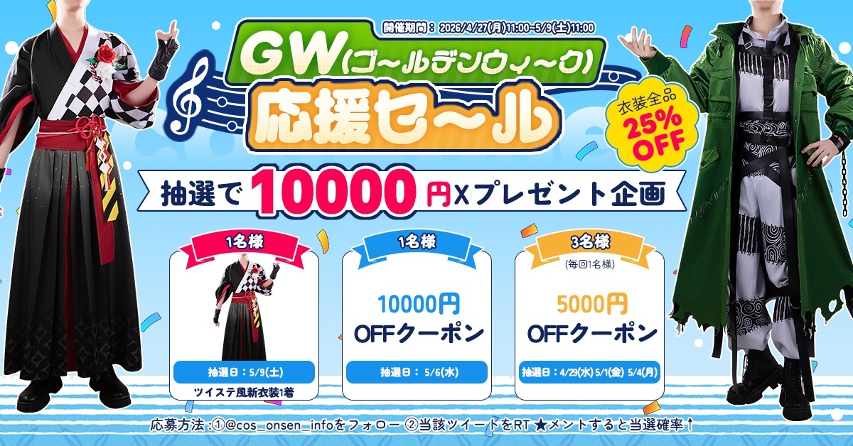 Xプレゼント企画も実施! 抽選で5名様に値引クーポン、コスプレ衣装をプレゼント!
