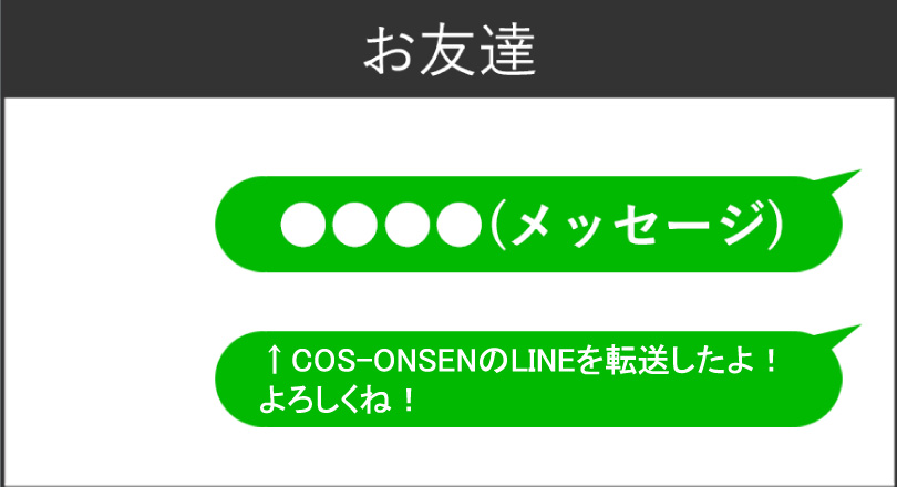 ①cos-onsenのLINE公式アカウント(@000kelol)を友達追加してください。