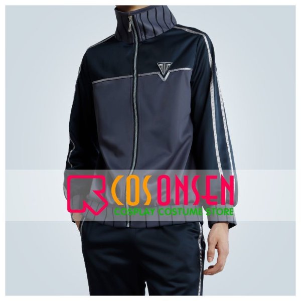 ジャージ生地で製作しています。いい素材を使って、手触りが柔らかな上着はファスナーがつき、袖に銀色のラインが縫い付けられていて、原作を忠実に再現しました。