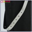 ポリエステルツイルで制作しています。ストレートな黒いパンツです。脚長効果を発揮しています。フロントに白の糸が縫い付けられて、原作を忠実に再現するよう心掛けています。
