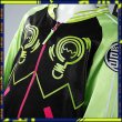 光沢布とサテンで製作しています。黒と緑を基調としたスタジャンで、両サイドに本物ののポケットがあって便利です。正面と左袖に原作に忠実する絵柄が施されて再現度が高いです。