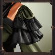 サテンで製作しています。襟と袖に多くのフリルを縫い付けて超可愛いです