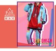 ジャージ生地で製作しました。フロントにボタンが付いています。炎の模様がプリントされています。全体はすっごくかっこいい感じを与えています。