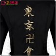デニムで製作しました。黒を基調として、文字の刺繍が入っています。かっこいい感じを与えています