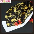 ヘリンボーンで制作しています。黒を基調として、裾に赤い曼珠沙華と金色の花柄がプリントされて再現度が高いです。