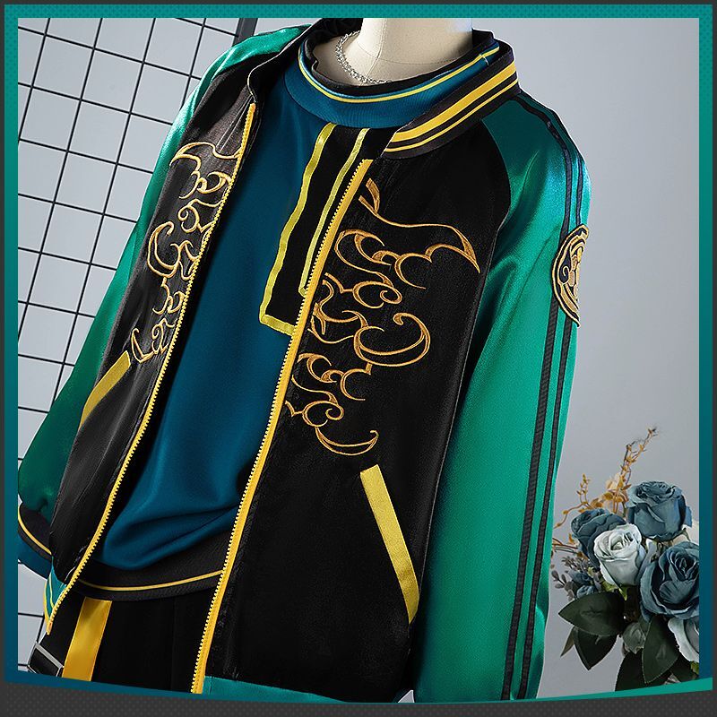 サテンと光沢布で製作しています。緑と黒を基調として、両サイドに本物ののポケットが施されて便利です。正面と左袖に綺麗な刺繡が施されて再現度が高いです。