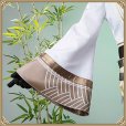 ジャガード生地で製作しています。白い中華風上着です。袖口にマントと同じような花柄がプリントされて再現度が高いです。