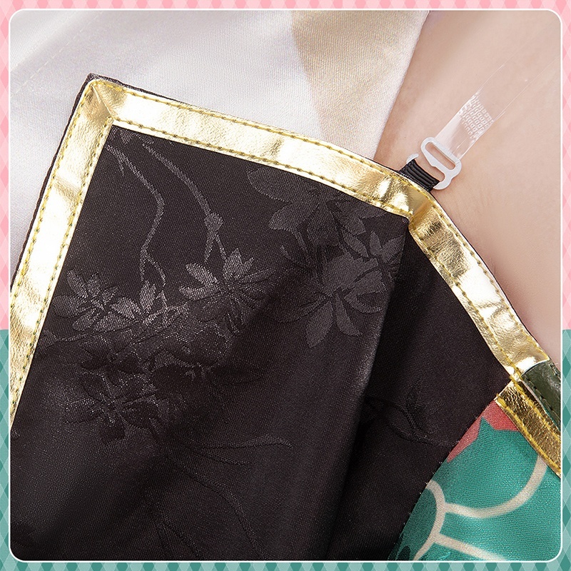 ジャガード生地で製作しています。黒と緑を基調に、中国風の要素と金色の縁取りが施された繊細で優雅なデザインは、古典的な魅力と現代的なエレガンスを融合しています。