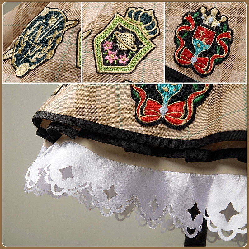 コート、ベスト、インナー、スカート、飾り物(帽子、カチューシャ、耳飾り、眼鏡、リボン、髪飾り、腰飾り、パンスト)