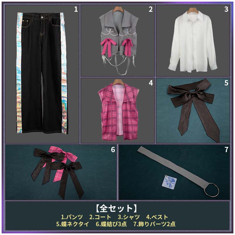 コート、ベスト、シャツ、パンツ、飾り物(蝶ネクタイ、蝶結び、飾りパーツ2点)