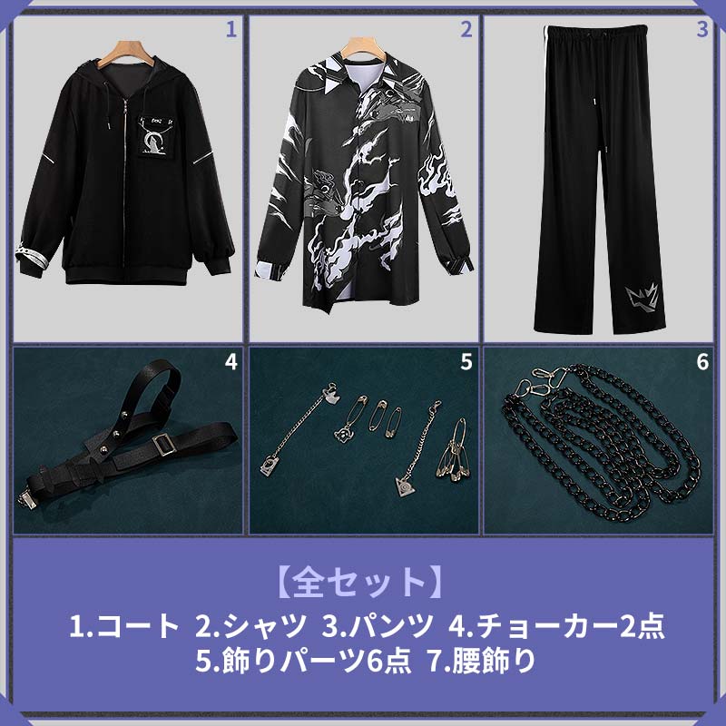 コート、シャツ、パンツ、飾り物(チョーカー2点、飾りパーツ6点、腰飾り)