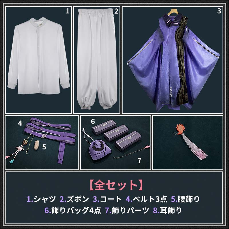 コート、シャツ、ズボン、飾り物(ベルト3点、腰飾り、飾りバッグ4点、飾りパーツ)