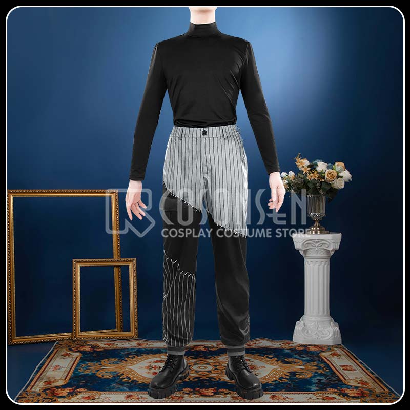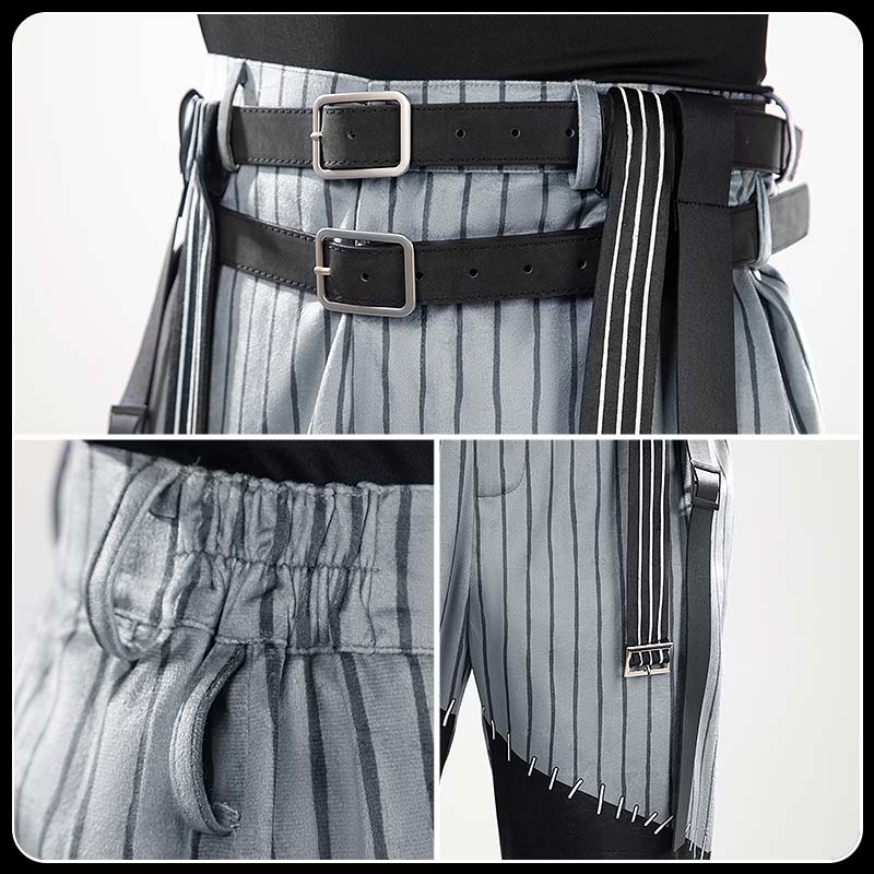 白黒のストライプと黒の配色が特徴的なパンツ。ダークな学園スタイルとクリスマスの華やかさを、見事に調和させたデザインです。