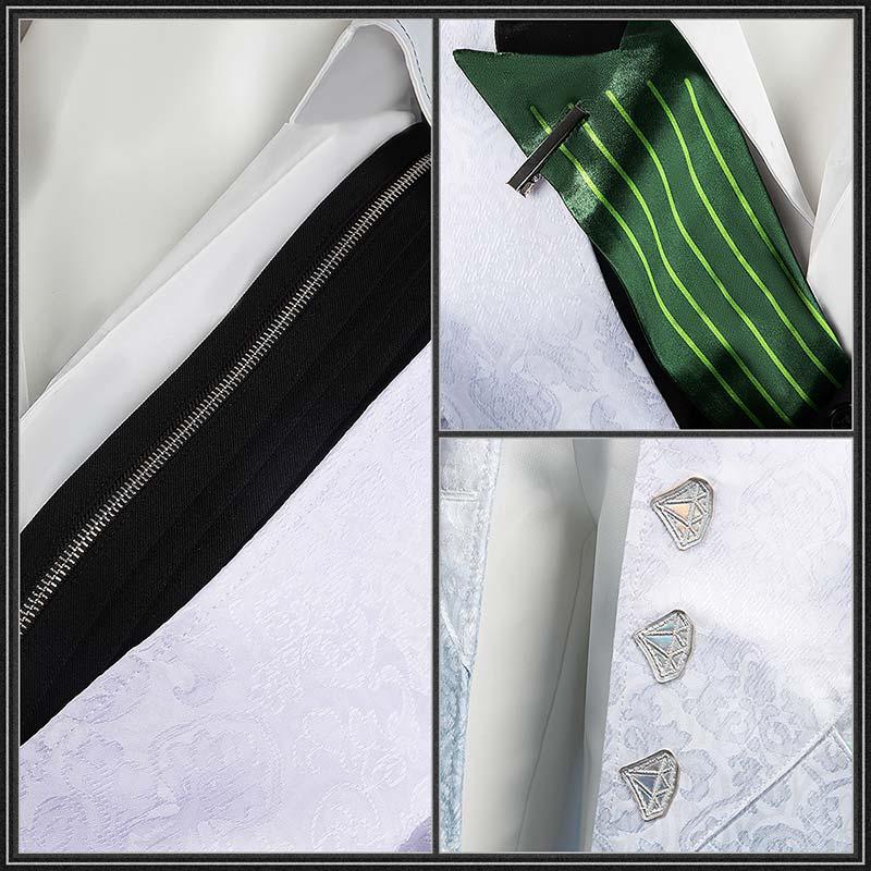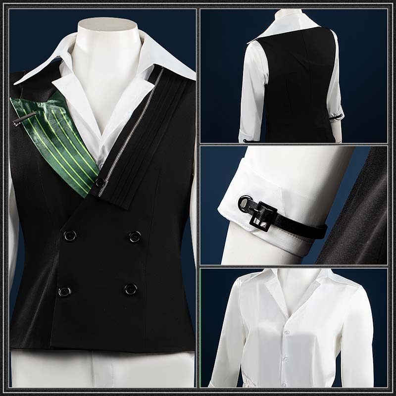 コート、パンツ、シャツ、ベスト、飾り物(肩掛け、胸飾り2点、腿飾り4点、腰布、ベルト、バッグ、手袋2点)