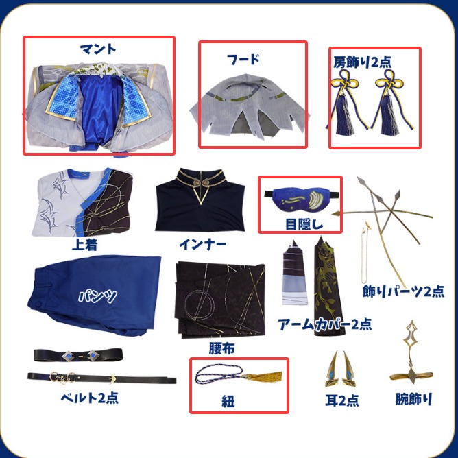 バーチャルYouTuber Vtuber 小柳 変身後 マント、フード、房飾り2点、目隠し、紐のみ バラ売り [y6991-1]