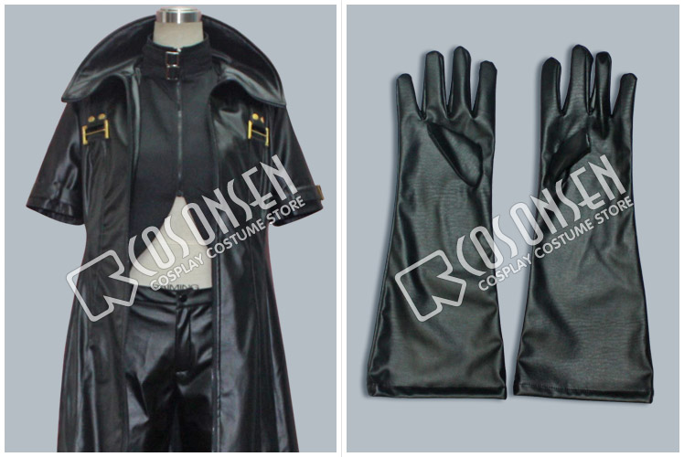 黒を基調した合皮生地で製作されます。半袖です、ロングコートはとてもかっこよくて、立襟は更にこの男らしさを表現します。
