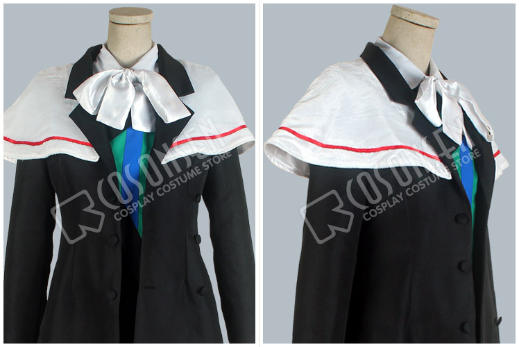 黒色を基調した裾長いコートです。肩の白いマントが見どころです。