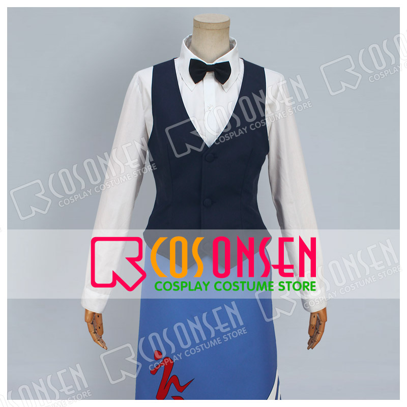 ■ジャンル:大人気なアニメ・ 銀魂 カフェアンドバー 桂小太郎 ウエイター コスプレ衣装 COSONSEN ■セット内容:計5点 ベスト、シャツ、ズボン、エプロン、飾り物(蝶ネクタイ) ■素材:ポリ混紡生地、シャツ生地 ■商品詳細: ▼ベスト 紺色を基調したポリ混紡生地にて製作します。ベストの様式は上手く原作を還元しました。良い素材を使って製作して、とても上品に見えます。 ▼シャツ 白を基調したシャツ生地にて製作します。シンプルなデザインで製作したシャツです。純白で清潔感が溢れています。 ▼ズボン 紺色を基調したポリ混紡生地にて製作します。良い素材で製作されており、換気性も着心地もとてもよいです。深い色を使って、とても大人に見えます。 ▼エプロン 青を基調したポリ混紡生地にて製作します。エプロンは鮮やかな色をつかって、とても目立って綺麗です。「えりざべす」の文字が丁寧に捺染されており、原作を上手く還元しました。 ▼飾り物(蝶ネクタイ) 蝶ネクタイも付属しています。
