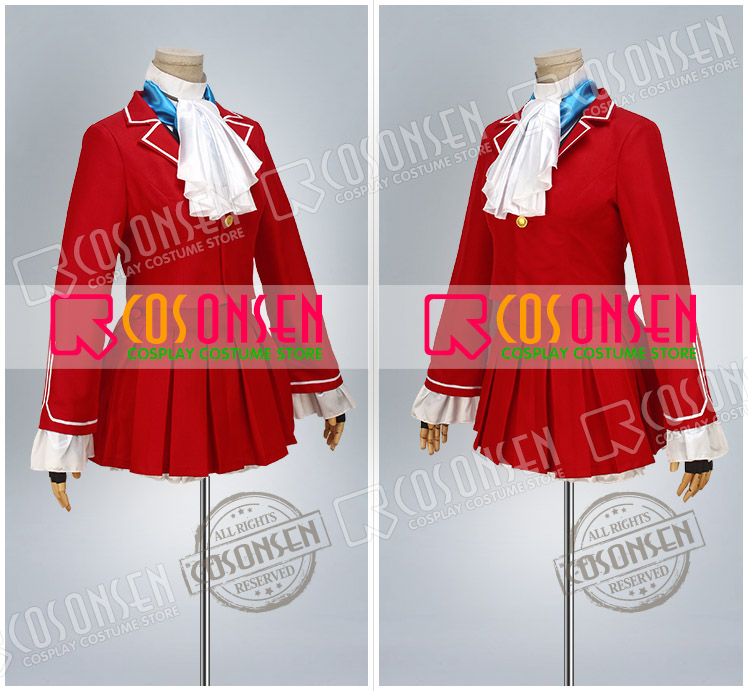 ■ジャンル: ストリートファイターV 神月かりん コスプレ衣装 COSONSEN ■セット内容:計9点 ブレザー、ベスト、シャツ、スカート、飾り物(手袋、ネッカチーフ、スカーフタイ、レッグウォーマー、髪飾り) ■素材:ポリ混紡、シャツ、サテン ■商品詳細: ▼ブレザー 赤を基調したポリ混紡にて製作します。シルエットの良いブレザーです。襟口と袖口に白いラインは飾っており、よく原作に忠実します。 ▼ベスト 黒を基調したポリ混紡にて製作します。ファスナーで簡単に脱着できます。 ▼シャツ 白を基調したシャツ生地にて製作します。袖口にフリルは付き、上品に見えます。 ▼スカート 赤を基調したポリ混紡にて製作します。プリーツスカートになり、裾は二重ねです。 ▼飾り物 手袋、ネッカチーフ、スカーフタイ、レッグウォーマー、髪飾りも付属しています。
