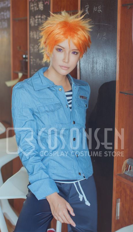 デニム生地で製作しました。丈短めのデザインです。袖口は折り返された状態で、左袖には星のワッペンと白いラインが飾ってあります。胸にsummerの文字が付き、よく原作に忠実しています。