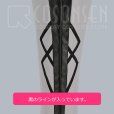 ポリ混紡で製作しました。光沢のある合皮のサイドラインが入っています。両サイドに黒いラインを縫い付けています。