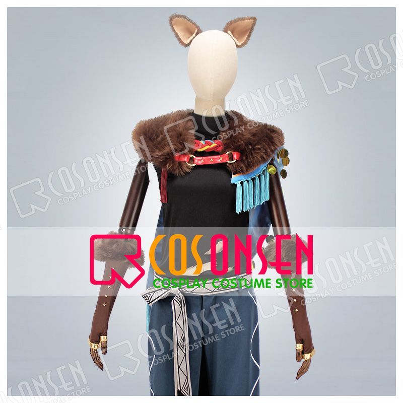 ショール、ファー襟、耳2点、しっぽ、手袋2点、紐、腰帯、房飾り、レッグウォーマー2点、足ベルト2点も付属しています。