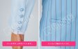 シャツ生地で製作されました。ウイングカラーのデザインです。フロントにピンタックがあしらってあります。