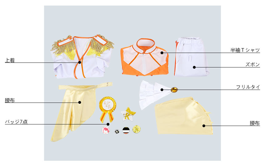 フリルタイ、バッチ7点、腰布2点も付属しています。